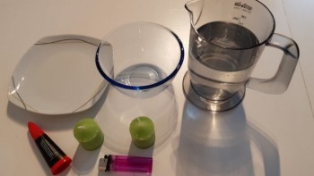 - Im Anschluss wird die Schüssel bis zum oberen Rand der Kerze mit Wasser gefüllt, sodass die Kerze gerade nicht erlischt.