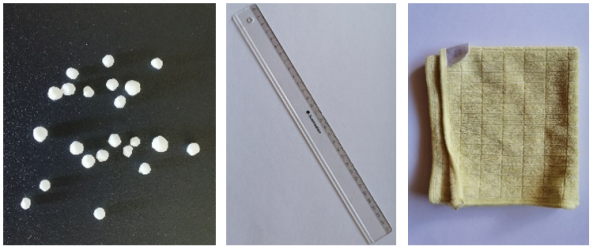 - Anstelle des Mikrofasertuchs und des Plastiklineals können auch andere, für die elektrostatische Aufladung geeignete Gegenstände verwendet werden.