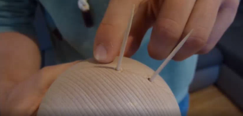 - Stecke die beiden Zahnstocher in die Holzkugel.