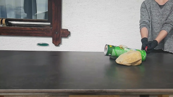 - Halte das Feuerzeug an das Loch am hinteren Ende der Dose und entzünde das Feuerzeug. Mit lautem Knall schießen Deckel und Korken nach vorne weg.