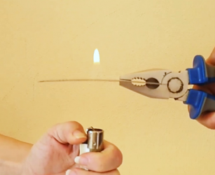 - Wenn bei Schritt 5 das untere Feuerzeug zu weit oben (d.h. fast das Netz berührend) gehalten wird, erlischt die Flamme ebenfalls.