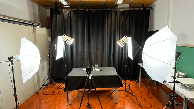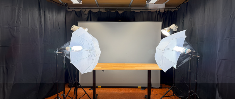 Unser neu eingerichtetes Filmstudio bietet eine moderne und vollständige Ausstattung für die semi-professionelle Filmproduktion und Bildbearbeitung. Eine Vielzahl von Materialien und Werkzeugen stehen den Studierenden zur Verfügung und ermöglichen es, kreativen Ideen umzusetzen. Mit hochwertigen Kameras, Licht- und Tontechnik sowie leistungsstarken Bearbeitungssoftwarelösungen steht alles zur Verfügung, was für die Umsetzung von Projekten benötigt wird. Ein Podcaststudio ist ebenfalls vorhanden. Die Geräte und Materialien sind einfach und transportabel zu verpacken und können von den Studierenden auch ausgeliehen werden.