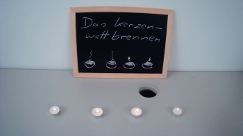 - möglichst gleichzeitig alle Gläser umgedreht über die Kerzen stülpen.